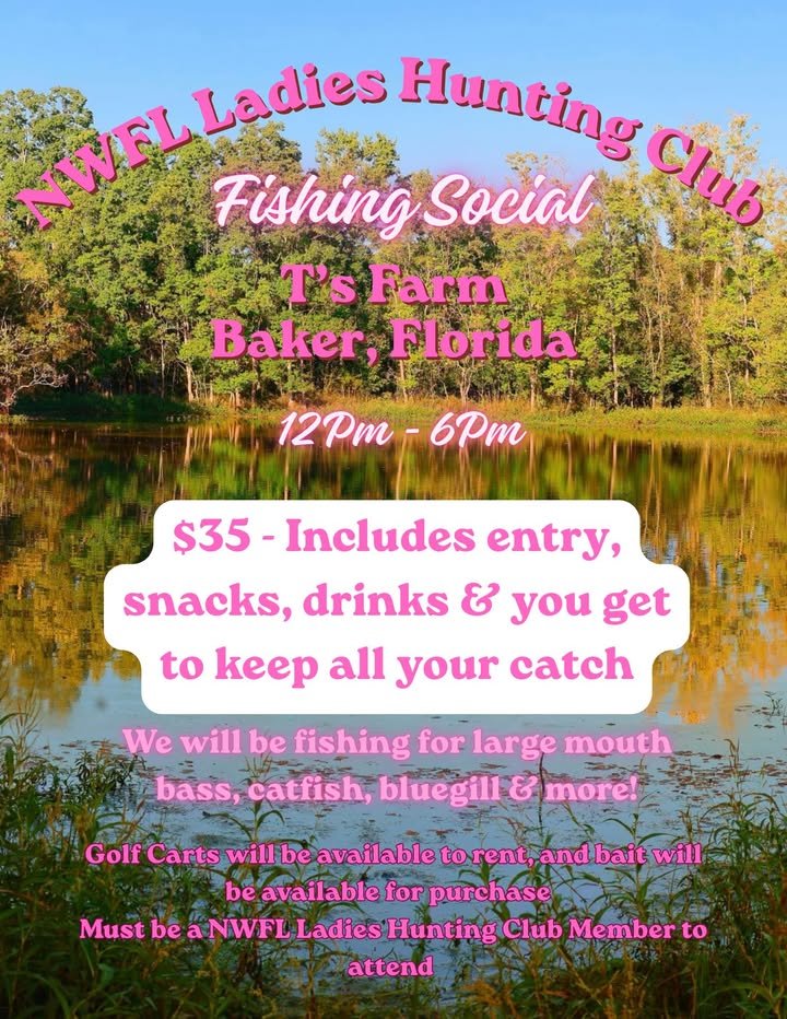 A relaxed afternoon on the farm with the NWFL Ladies Hunting Club—fishing, fresh air, and time together by the pond.